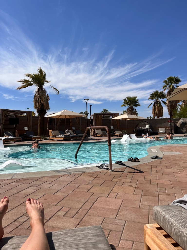 Atmosphere: The spa has an indoor/ outdoor feel in the waiting area and had a tranquil vibe throughout the inside. The antigravity chairs were all taken so I didn’t get to try those. Other guests using them were on their phones and one on their laptop, working. The pool was lively a lively scene/ party vibe.